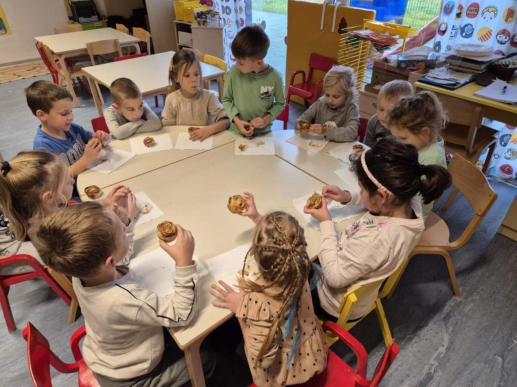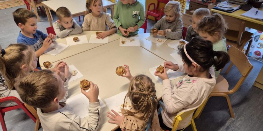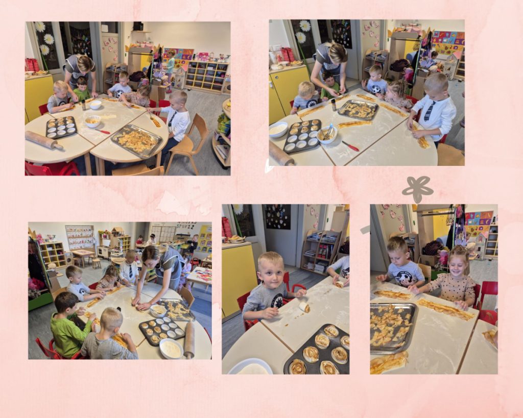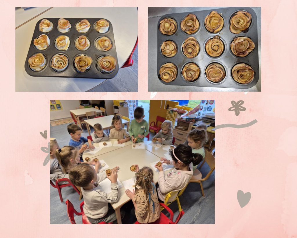 Za izradu ovih jestivih umjetničkih djela, djeca su uložila velik trud i interes. Svaka jabuka dobila je pažnju malih ruku, a miris svježih plodova ispunio je prostoriju. Narezane šnitice jabuka slagali su u lisnato tijesto, premazano marmeladom koja je dodatno obogatila okus. Uz podršku odgajateljice, djeca su strpljivo oblikovala tijesto u male, šarmantne ružice, a svaki je korak bio popraćen veseljem i smijehom.