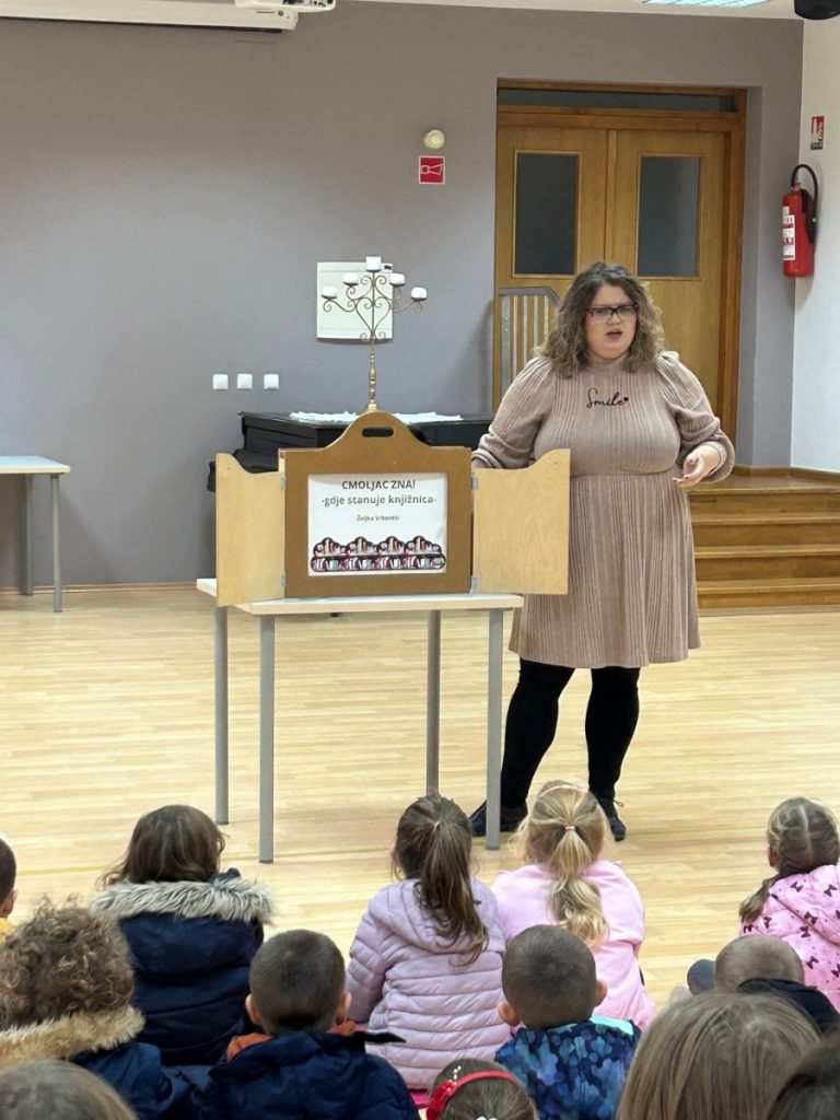 Povodom mjeseca knjige naši mališani su se upoznali sa Bibliobusom.Zajedno smo čitali priču Cmoljac zna te smo nakon toga razgledali i proučili zanimljivi sadržaj Bibliobusa.